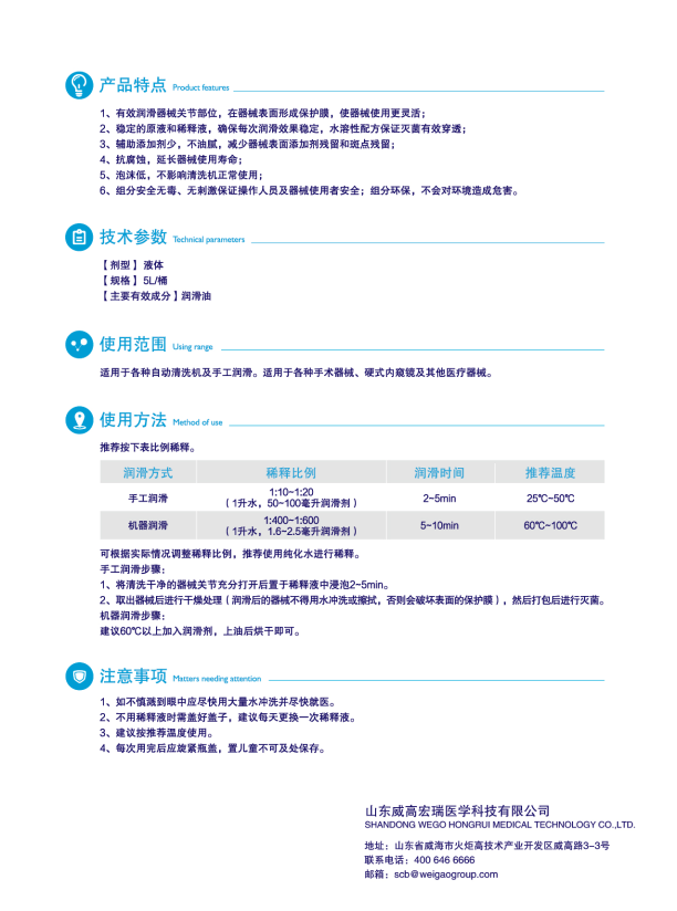 2.穩(wěn)定的原液和稀釋液,確保每次潤(rùn)滑效果穩(wěn)定,水溶性配方保證滅菌有效穿透;